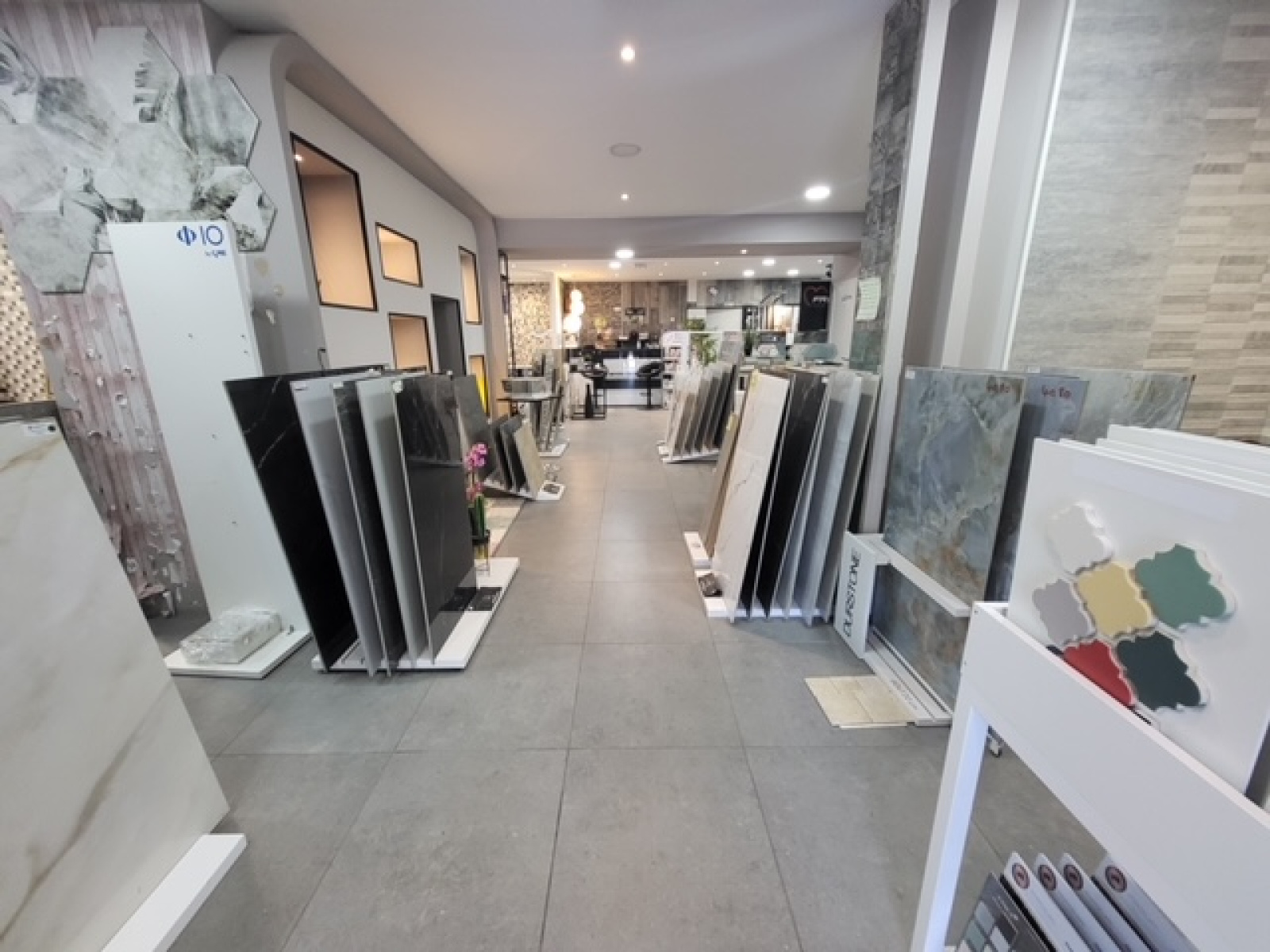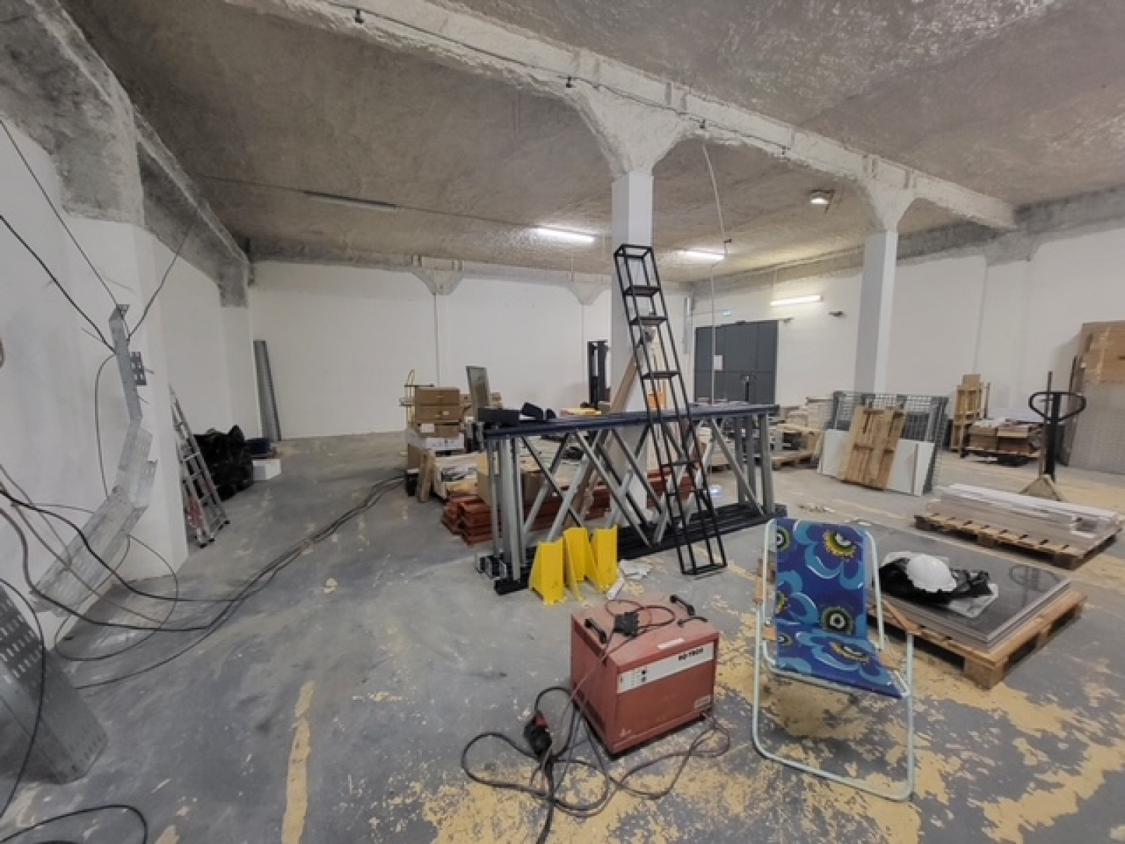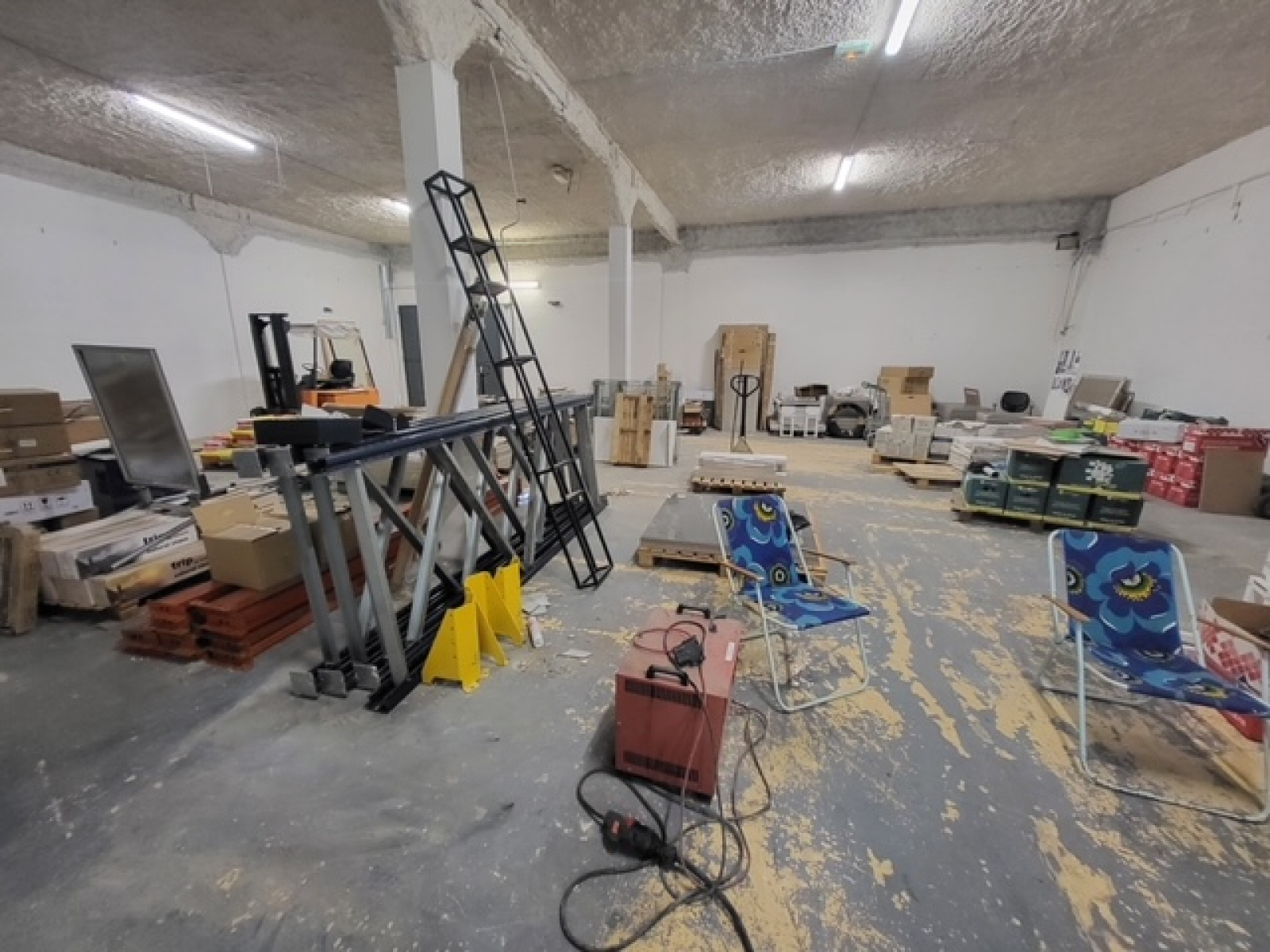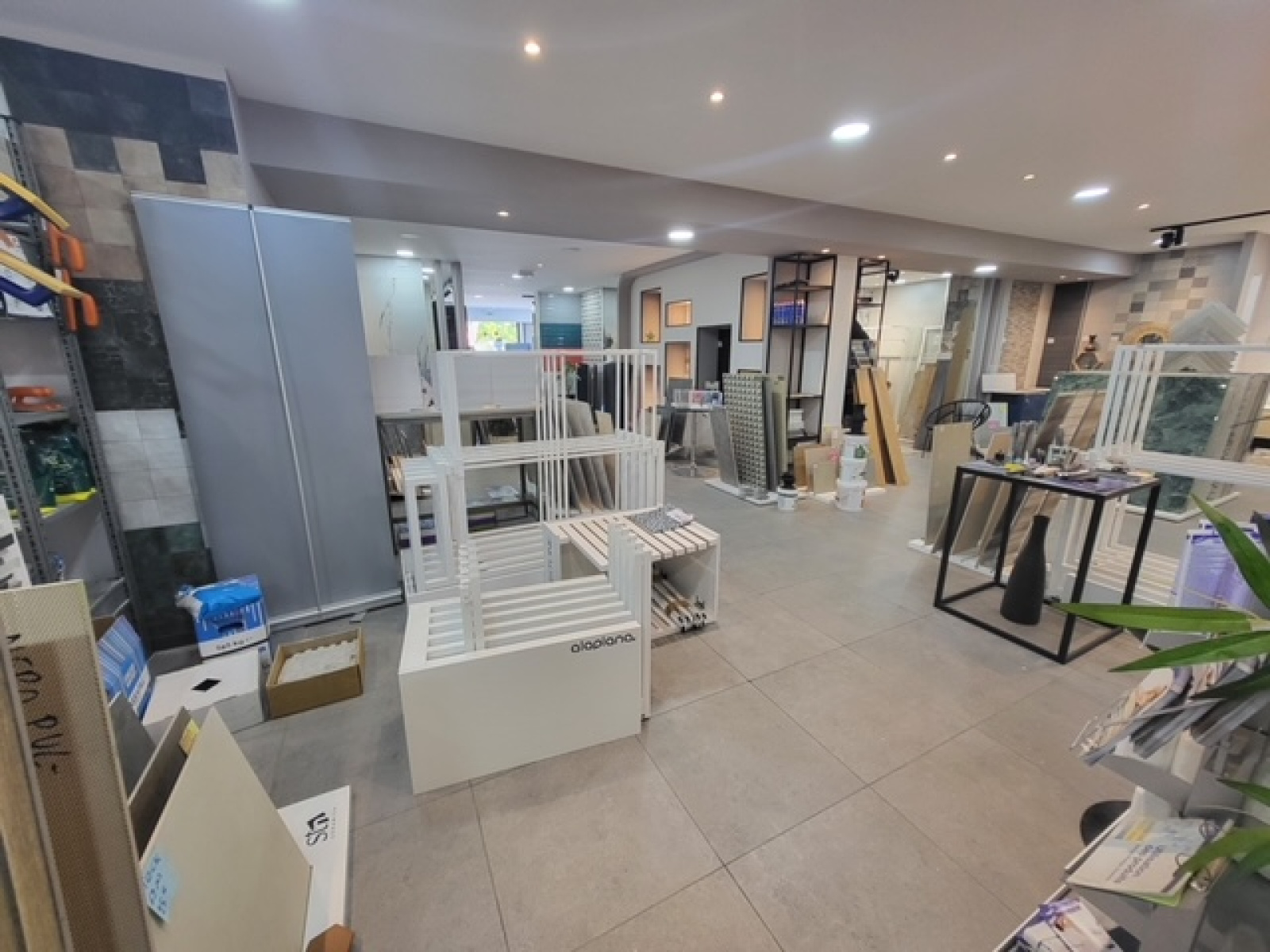 grande façade, belle hauteur sous plafond, Il est divisé en un espace de vente à l’avant et un espace de stockage à l’arrière pour les accès camion et livraison.